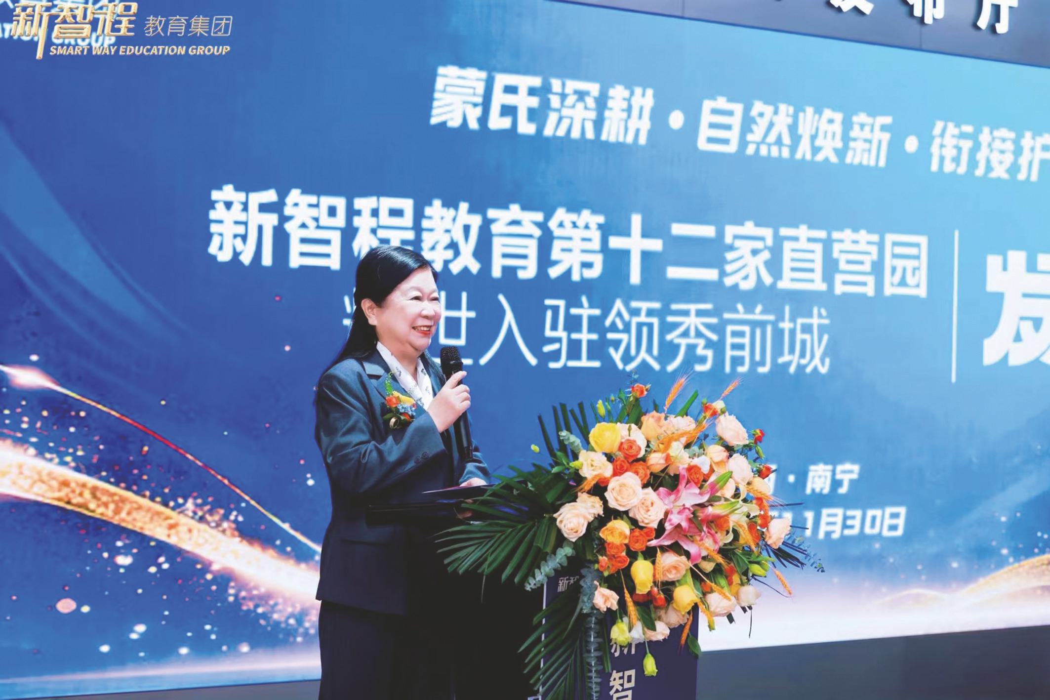 发布会上,集团董事长徐东女士表示:“我毕生只专注幼儿教育,希望广西孩子在家门口就能享受世界级教育。”家长代表邓一橙妈妈分享了对新智程的信任,园长黄春惠则从课程设计、师资配置等角度揭秘了旗舰园的品质保障。